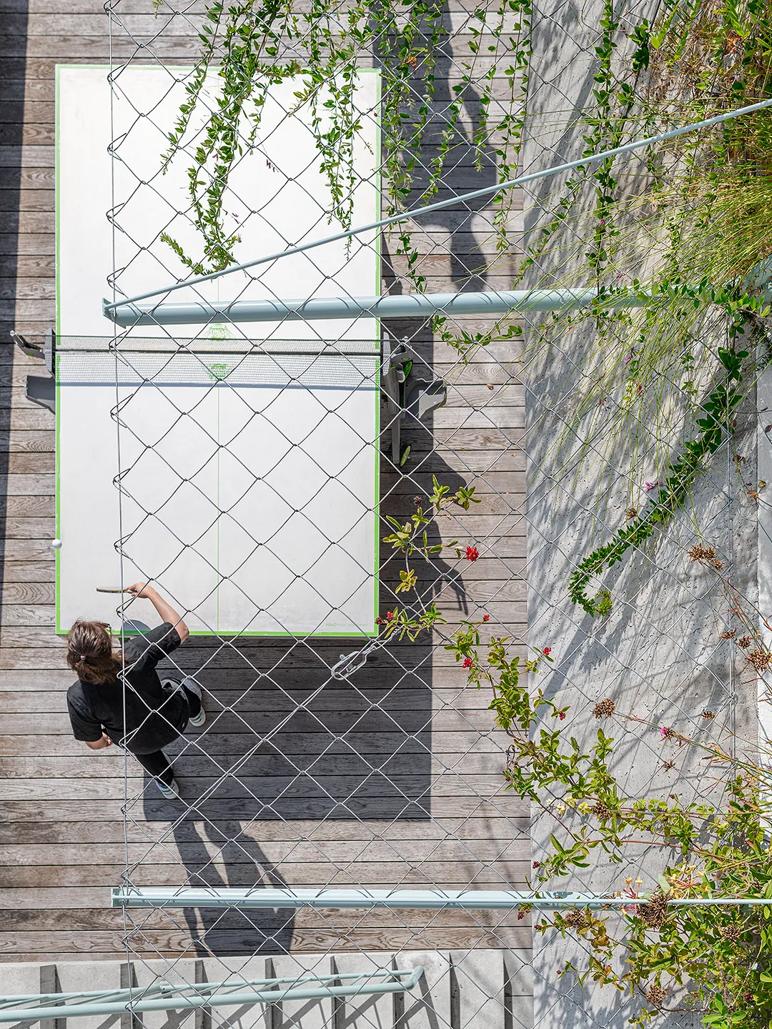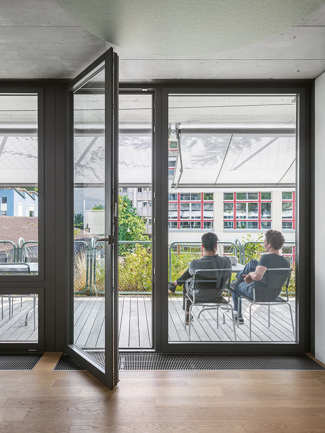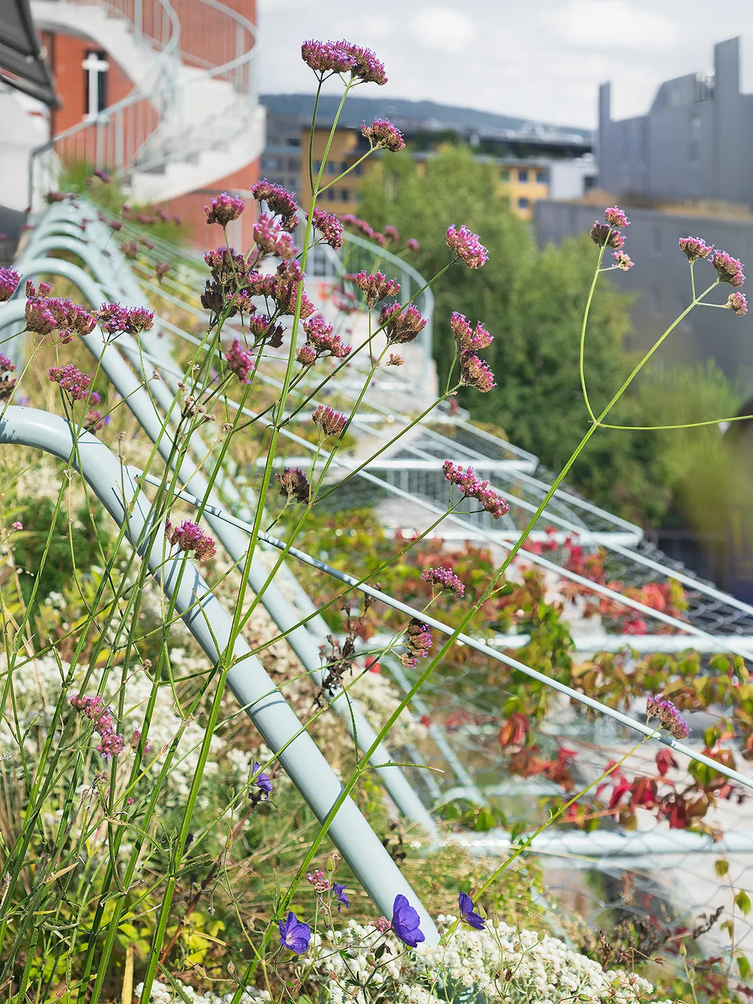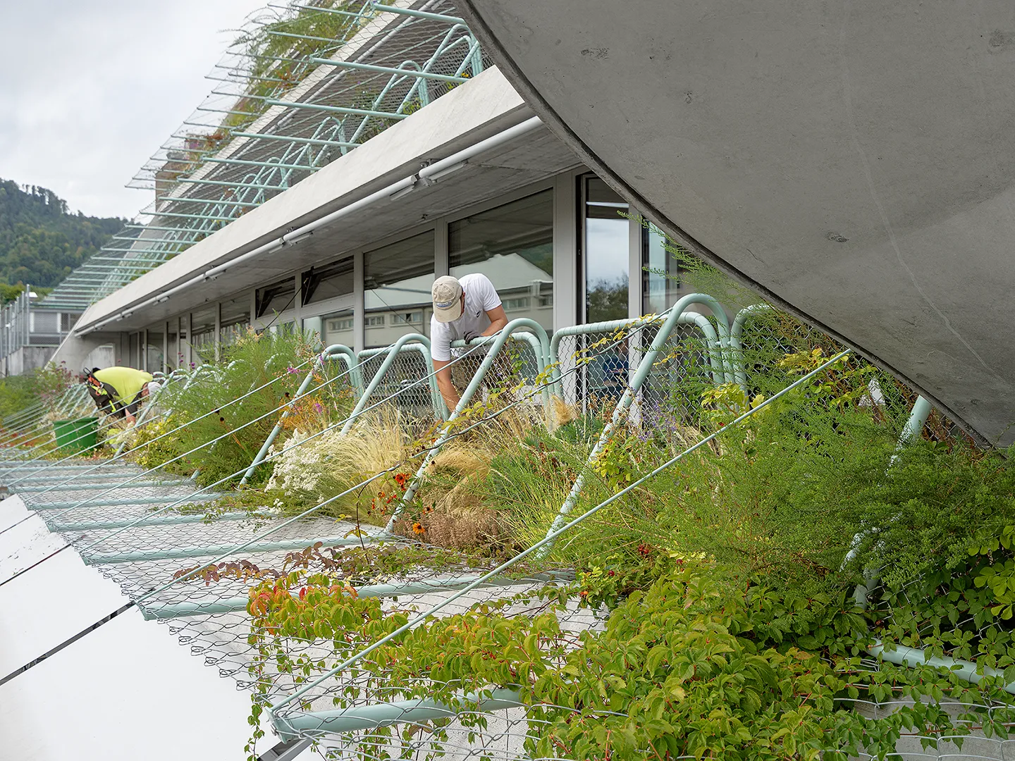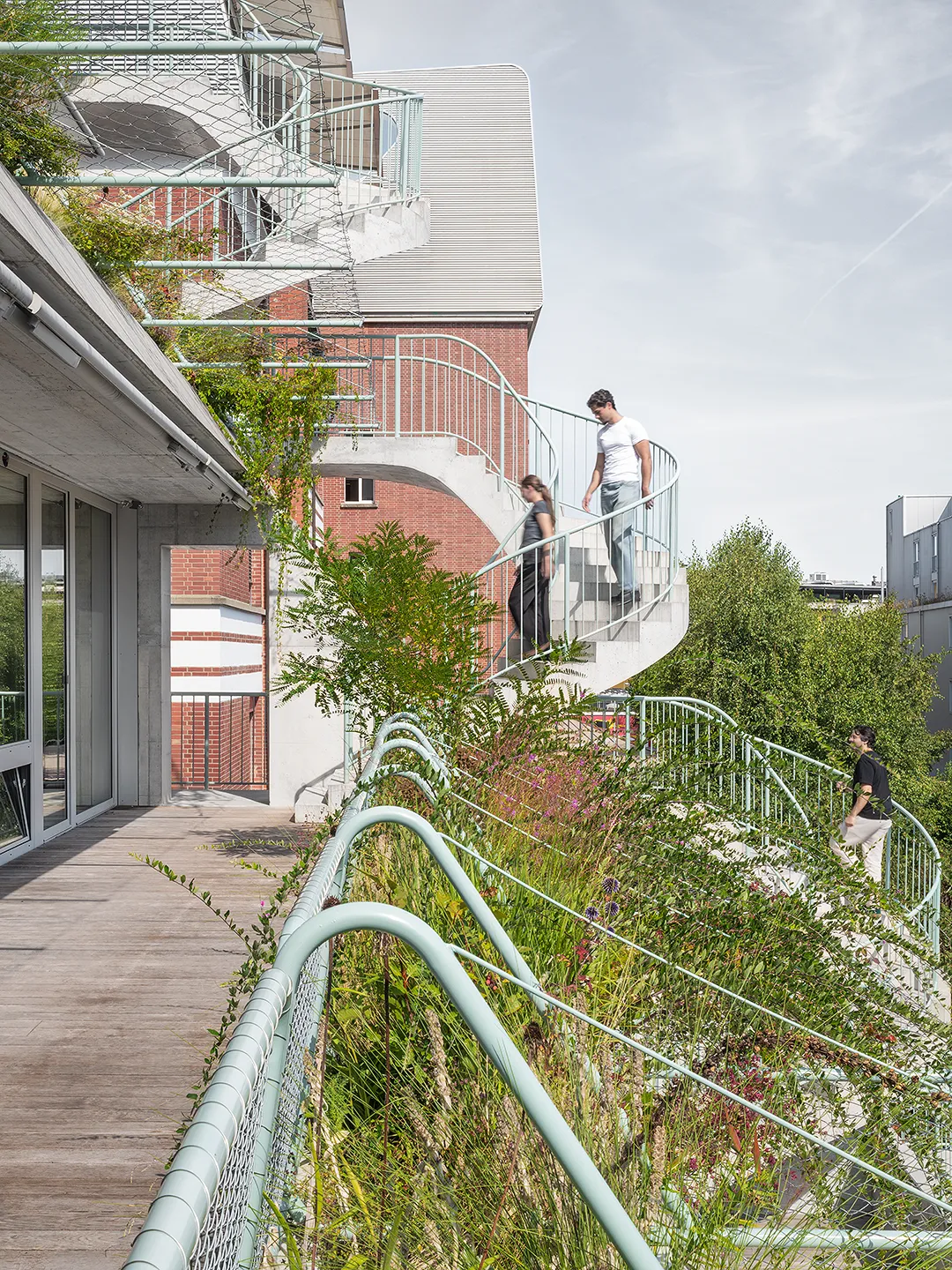 Building portrayed for EM2N with a focus on plants, vegetation and terraced greenery. The vibrant green oasis in the industrial district of Binz, provides climatic benefits by protecting from the sun and cooling down the air around.